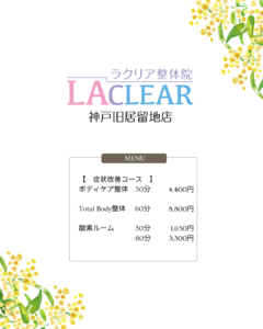 こんにちは(^^)/ラクリア整体院です。ブログをご覧いただきありがとうございます。 ラクリアから今年最後のキャンペーンのお知らせです! 12月中にボディケア整体メニューを受けられた方は同月内来院でボディケア整体が通常¥4 […]